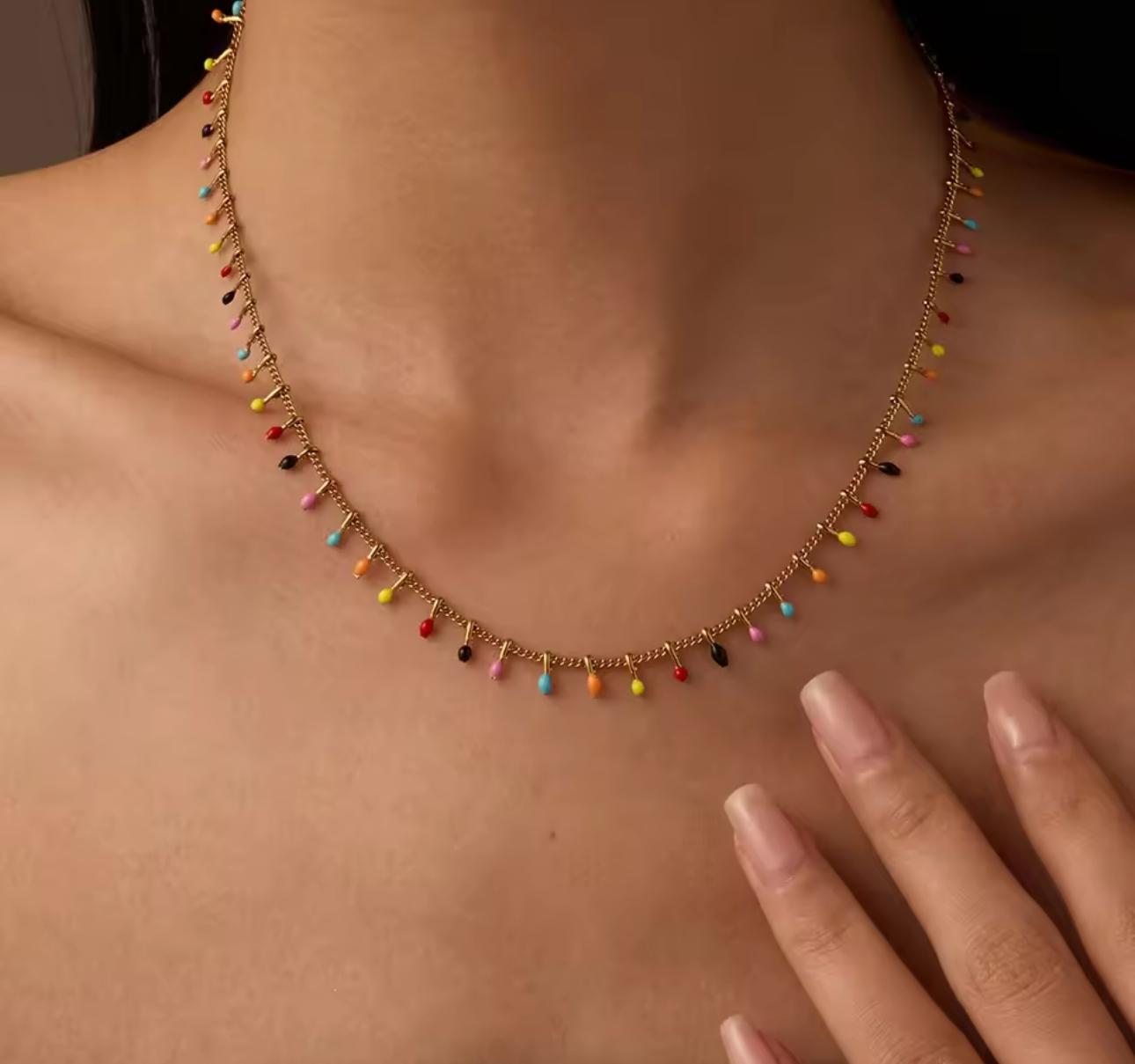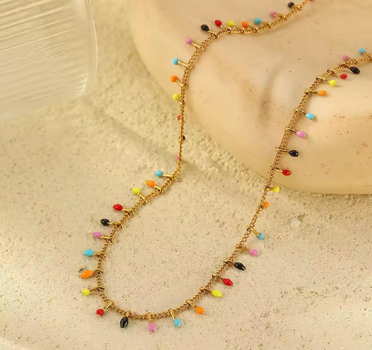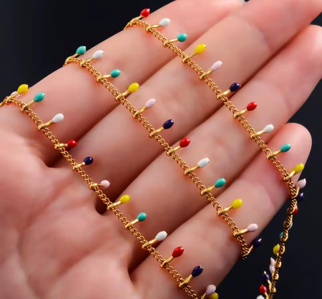 Collar en acero joyería super resistente con cadena muy finita dorada y fornitura esmaltada . Combínalo con otro collar algo más largo para completar el look ideal!